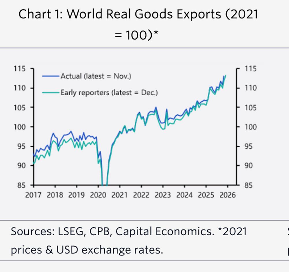 キャピタル・エコノミクスは、世界の物品貿易は2021年にパンデミックが回復しない限り、2025年に4.5%の成長が見込まれ、2011年以来最高の伸びとなると予想している。